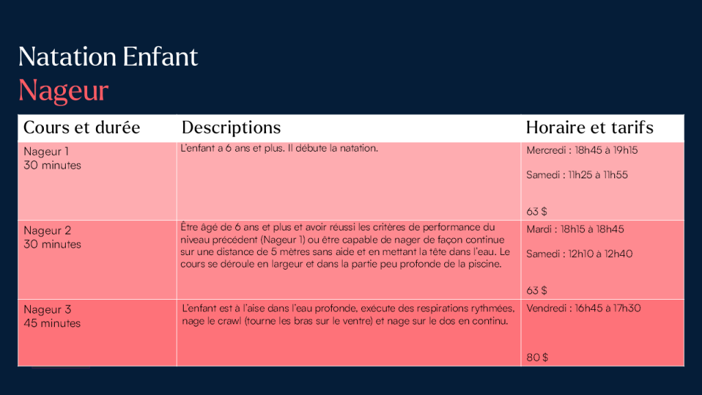 Natation 6-14 ans (Nageurs 1 à 6 )